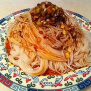 面条、葱、姜、蒜、辣椒粉、盐、油、老抽、陈醋。