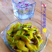嫩南瓜、瘦肉、小葱、油、盐、鸡精。