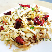干豆腐、瘦肉、小葱、大蒜、干辣椒、花椒、花生碎。
