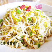 豆芽、小葱、盐、白砂糖、醋、鲜贝露、鸡精、老干妈辣椒、香油、大蒜。