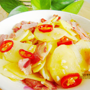 培根、大土豆、红辣椒、大蒜、油、盐、鸡精。