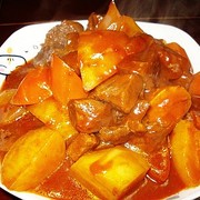 牛肉、洋葱、土豆、胡萝卜、番茄酱、葱、姜、山楂、老抽、醋、八角、盐。