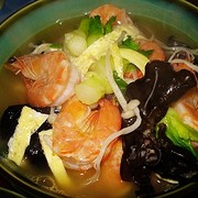 熟虾、金针菇、青菜、鸡蛋、木耳、盐。