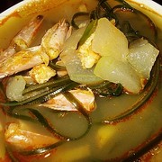 虾头、冬瓜、海带丝、葱、姜、蒜、盐。