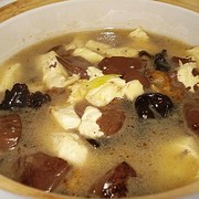 鸭血、豆腐、香菇、木耳、葱、姜、蒜、盐。