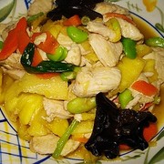 鸡胸、凤梨、胡萝卜、木耳、盐、料酒。