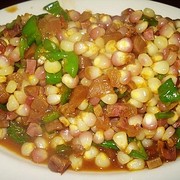烤麸、香肠、木耳、胡萝卜、金针菇、青豆、茭白、葱、甜面酱、番茄酱、盐、糖。