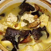 河蚌、豆腐、木耳、肥肉、腊肉、葱、姜、泡椒、花椒、盐、糖、白胡椒粉。