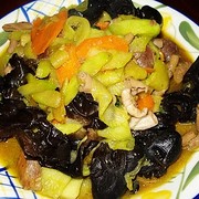 鸭肠、鸭心、鸭胗、胡萝卜、木耳、黄瓜、葱、姜、盐。