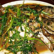 魛鲳、香菜、葱、姜、蒜、花椒、盐。