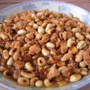 鸡肉、花生、洋葱、姜、蒜、生抽、酱油、淀粉、醋、淀粉、料酒、白胡椒粉。