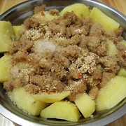 猪肉、土豆、米粉、十三香、盐、料酒、辣椒面。
