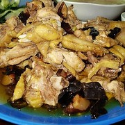 鸡、香菇、木耳、葱、姜、蒜、醋、生抽、料酒、花椒、八角、盐、糖、白胡椒粉。