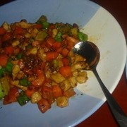 鸡肉、青椒、胡萝卜、淀粉、葱、姜、料酒、辣豆豉、酱油、盐。