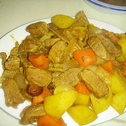 牛肉、土豆、洋葱、胡萝卜、咖喱粉、盐。