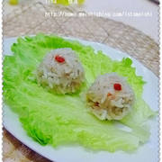 猪肉馅、泡好的糯米、榨菜丁、红彩椒丁、黄彩椒丁、尖椒丁、火腿丁、姜末、葱末、蛋清液、生菜叶子、枸杞。