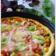 面粉、酵母、奶粉、水、香肠丁、玉米粒、香肠片、青豆、尖椒圈、葱头碎、西红柿片、糖、盐、披萨草、披萨酱。