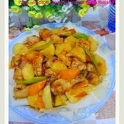 鸡腿肉、土豆、面粉、胡萝卜、小葱头、尖椒、西红柿、番茄酱、生抽、姜、葱、花椒、大料、香叶、盐、糖、鸡精。