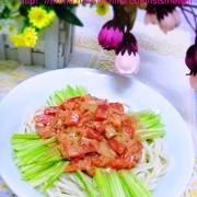 面条、西红柿、笨黄瓜、麻酱、水 、蒜末、盐 、糖、鸡精。