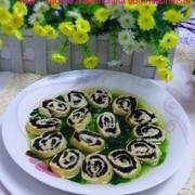 鸡胸肉、菠菜、豆腐皮、紫菜、葱、姜、绍酒、盐、蛋清、鸡汤。