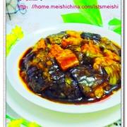 圆茄子、肉馅、葱、姜、盐、生抽、老抽、蚝油、糖、胡椒粉、蛋清液、生淀粉、料酒。