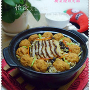 豆腐丸子、烧肉、海带丝、酸菜丝、土豆粉、姜片、葱。