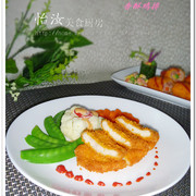 去骨大排、西兰花、白色菜花、葱头、胡椒粉、白酒、干淀粉、盐、糖、韩式辣酱、橄榄油。
