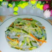 粉皮、金针菇、黄瓜、海带丝、红椒、盐、生抽、味精、白沙糖、姜丝、葱丝、香油。