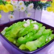 苦瓜、大蒜、生抽、盐、糖、醋、香油。