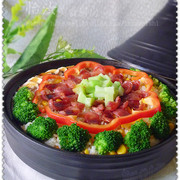 大米、盐、生抽、蚝油、水、甜玉米、西兰花、胡萝卜、彩椒、蘑菇。