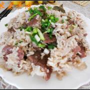 牛腿肉、糯米、盐、糖、胡椒、鸡精、小苏打、生粉、干葱、姜、葱花、蚝油、生抽、南乳汁、清水、橄榄油。