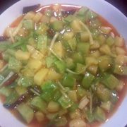 干红辣椒、姜米、蒜米、淀粉、葱节、盐、味精、红油。