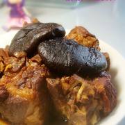 排骨、香菇、葱、姜、八角、桂皮、料酒、老抽、生抽、盐、白糖。