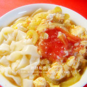 手擀面、西红柿、丝瓜、葱、姜、蒜、花生油、盐、白糖、香油。