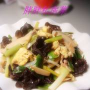 猪肉、木耳、冬笋、蒜苗、葱、姜、蒜、植物油、盐、料酒、酱油、味精。