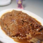 比目鱼、葱、姜、蒜、花生油、盐、料酒、老抽、生抽、白糖、醋、八角、味精、胡椒粉。