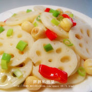 莲子、莲藕、葱段、辣椒片、水、盐、糖、胡椒粉、香油。