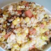 米饭、鸡蛋、鸡肉、火腿、虾仁、干贝、香菇、海参、冬笋、豌豆、鸡胸脯肉。