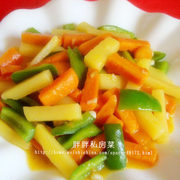 土豆、胡萝卜、柿子椒、葱、姜、盐、味精、鸡汤、淀粉、油、香油。