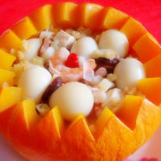 大虾仁、南瓜、豆腐、红椒、鹌鹑蛋、火腿肠、香菇、胡椒粉、白糖、醋、盐、葱、姜、蒜、料酒。