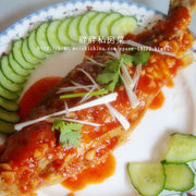 黄花鱼、花生油、葱丝、蒜末、番茄酱、料酒、胡椒粉、盐、白糖、醋、香油。