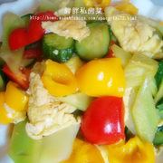 莴笋、黄瓜、红椒、黄椒、鸡蛋、葱、姜、蒜、花生油、盐、味精、香油。