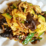 猪肉、鸡蛋、木耳、黄瓜、葱、姜、蒜、花生油、料酒、淀粉、生抽、老抽、盐、白糖、味精、香油。