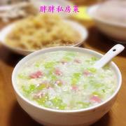 粳米、糯米、西芹、火腿肠、鸡蛋、盐、味精、胡椒粉。