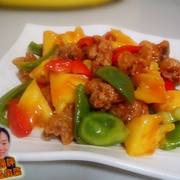 鸡腿、菠萝、红椒、青椒、盐、料酒、番茄酱、味精、调味酱油、白糖、淀粉。
