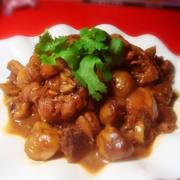 琵琶鸡腿、栗子、葱、姜、花生油、盐、料酒、老抽、生抽、白糖、五香粉。