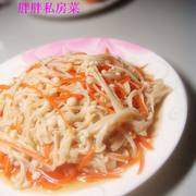 金针菇、胡萝卜、调味酱油、盐、白糖、醋、味精、香油。