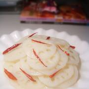 莲藕、尖辣椒、盐、白醋、白糖、香油。