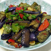 茄子、红椒、青椒、姜切片、蒜切片、干辣椒、小葱、郫县豆瓣、生抽、胡椒粉、盐、黑豆鼓、鸡精、蚝油。