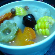 猪脚、苦瓜胡萝卜、鲜玉米、花生、红枣、枸杞。